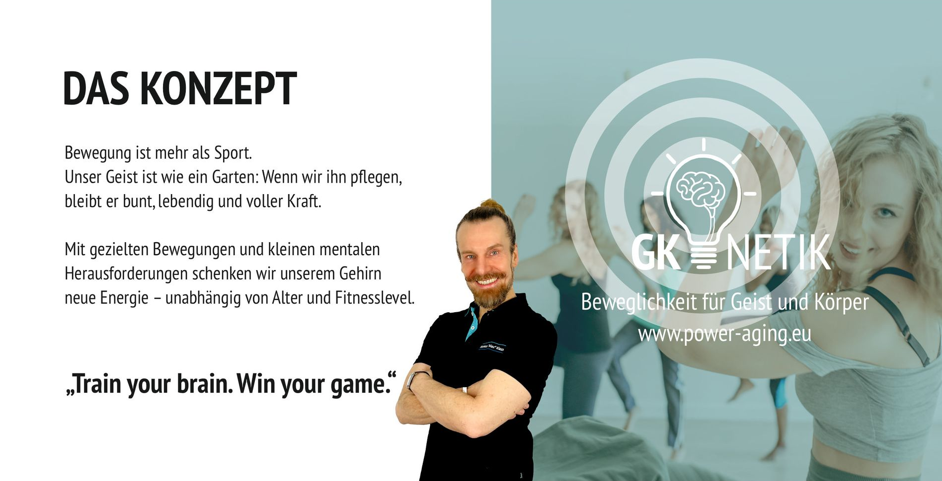 Gehirntraining zu einer wirksamen Einheit verschmelzen. Unter Anleitung von Markus Townsend-Klaus und einem Expertenteam verbindest Du Praxis, medizinisches Wissen und methodische Grundlagen zu einem lebendigen, motivierenden Trainingsansatz. Ein exklusives Kursbuch, Online-Zugriff auf Übungsvideos und ein Starter-Kit mit Werbematerialien unterstützen Dich dabei, direkt mit Deinen eigenen Kursen durchzustarten.
